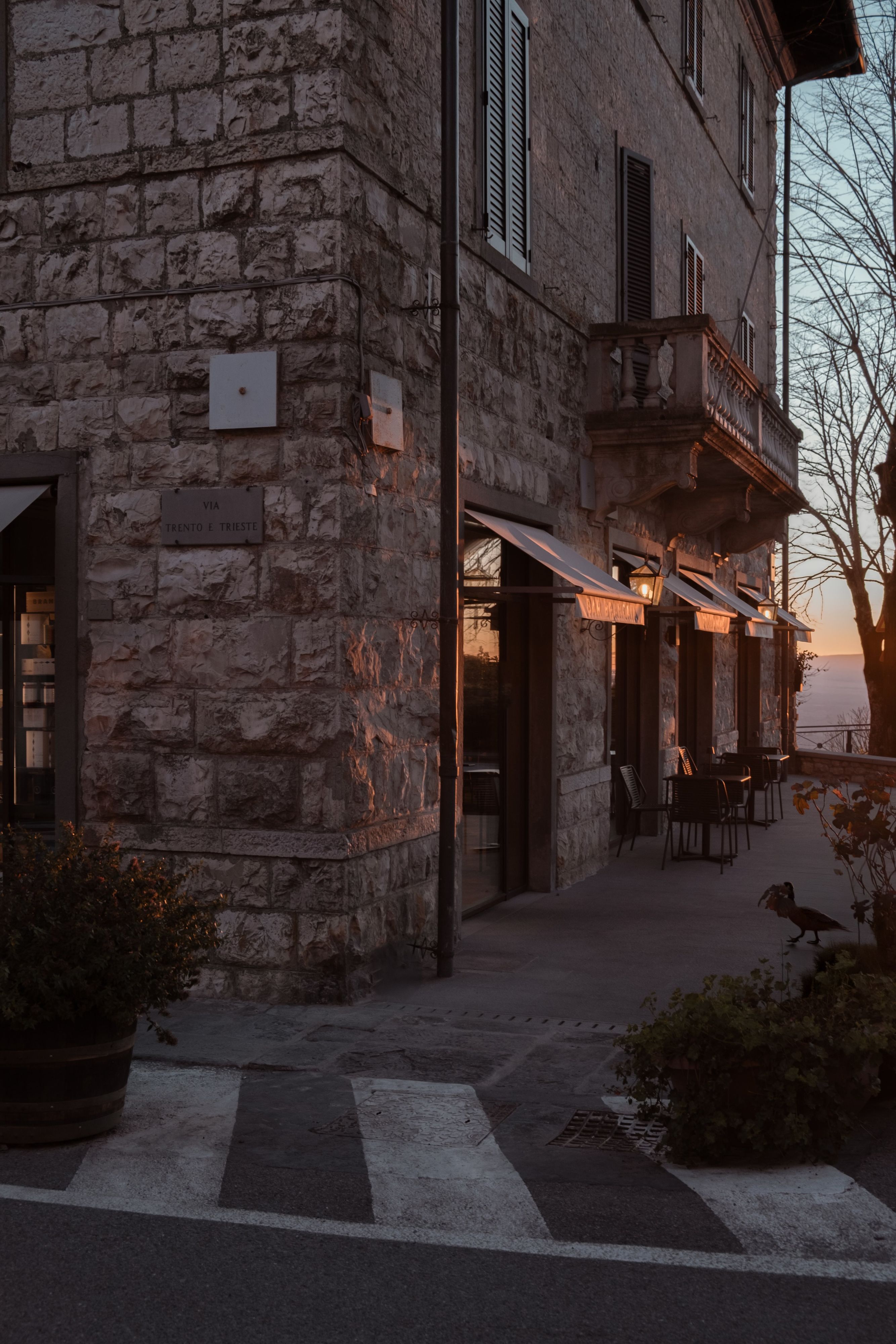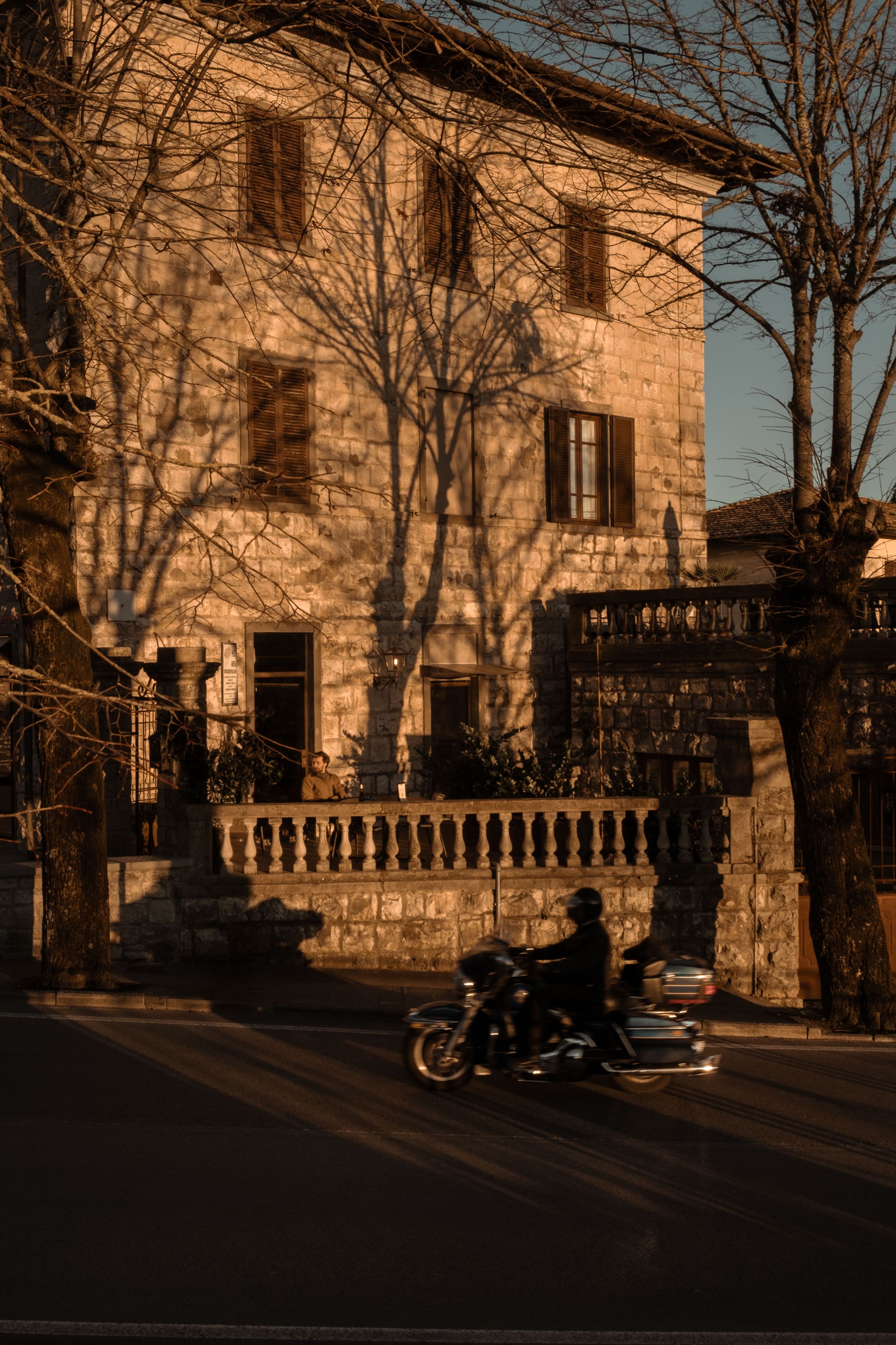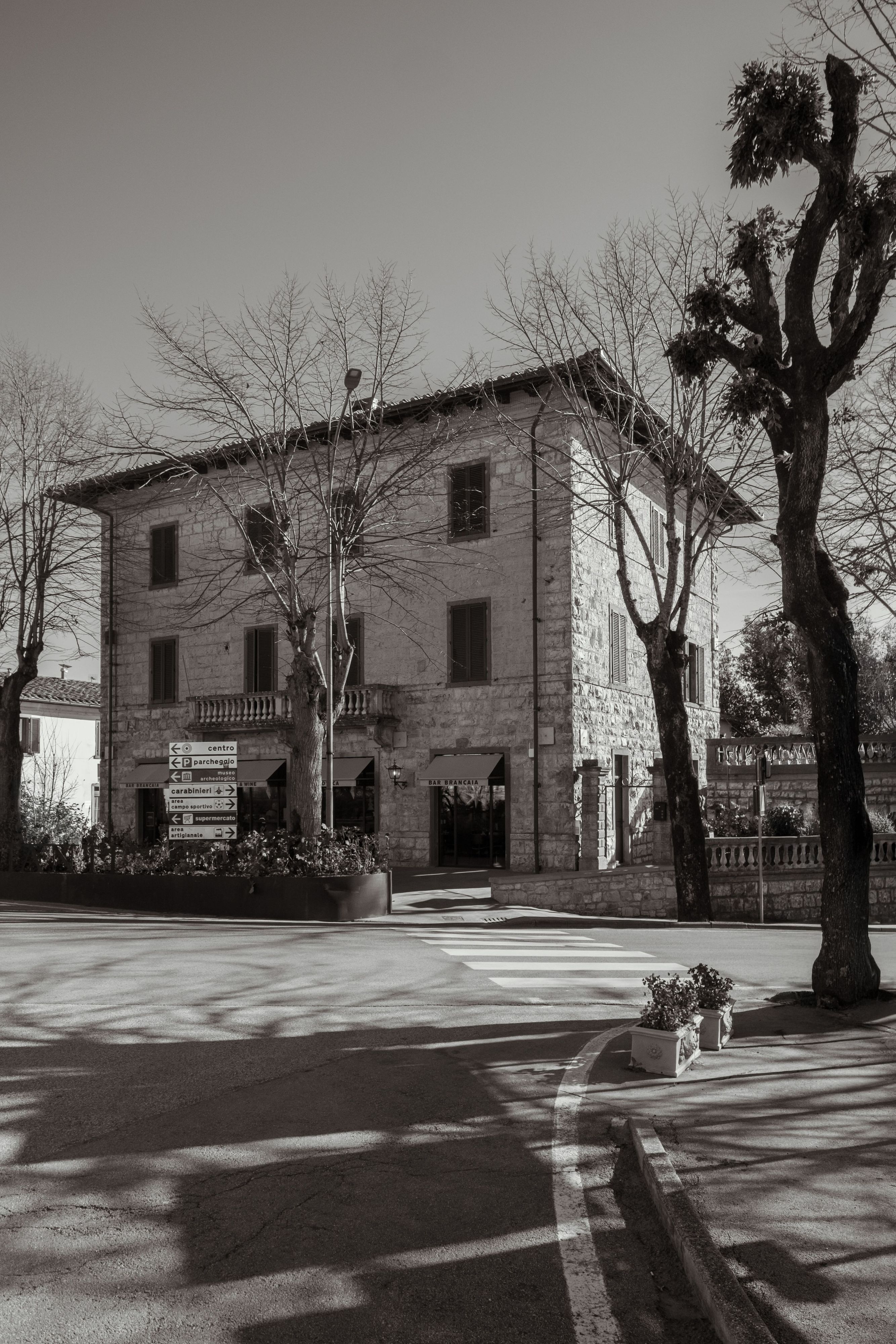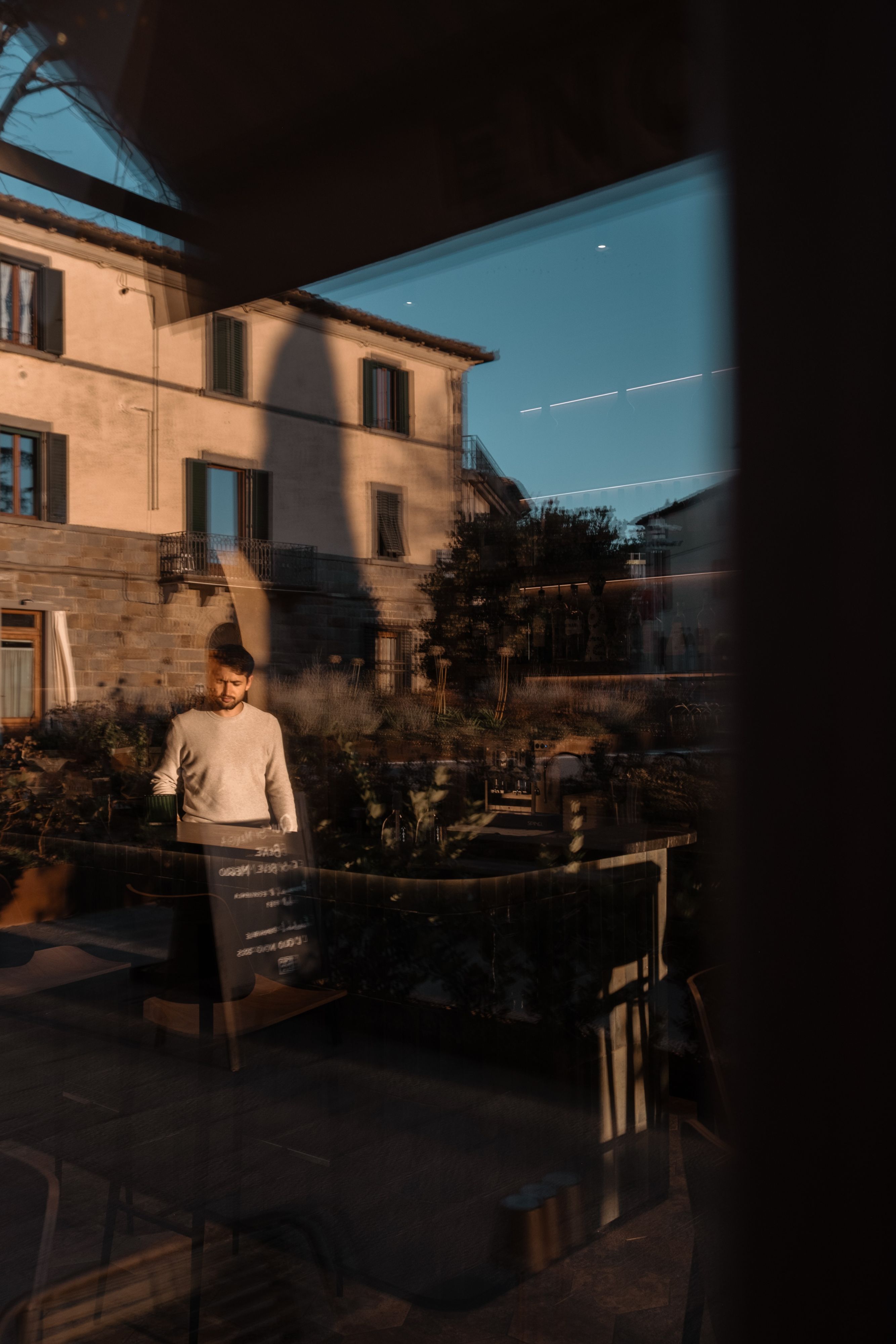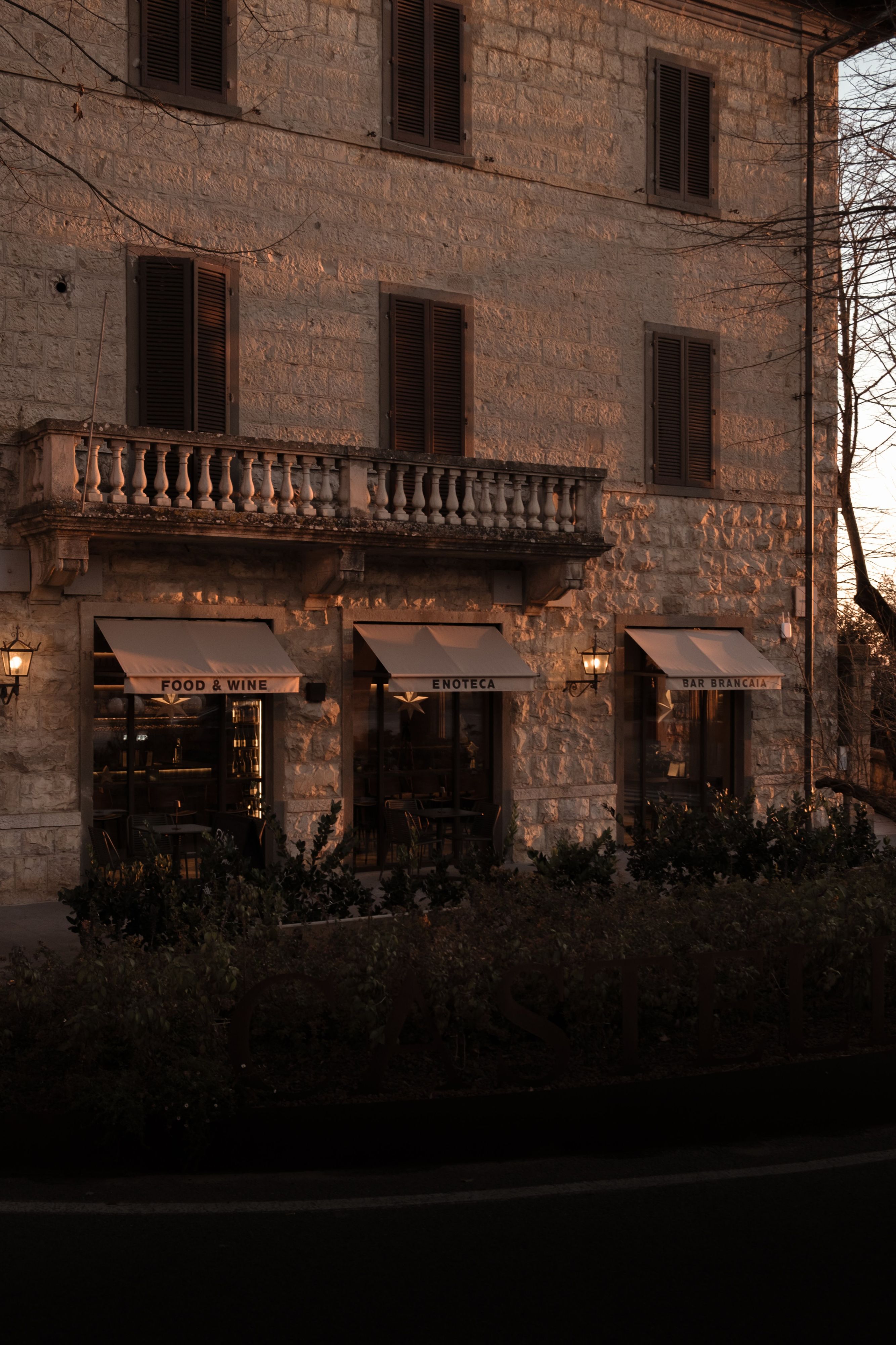 Bar Brancaia is a bar in the Chianti Classico hills, realised for a winemaker—an intimate place designed to frame the surrounding landscape. Inserted into a robust existing structure with sculpturally shaped columns, three plastered arches articulate the space and choreograph views towards the terrace and across the valley. A warm, pigmented clay-plaster finish and dark-stained timber built-ins add earthy depth, while the bar front—finished in blue-green glazed ceramic—sets a defining material statement. The result is a reduced, craft-driven bar that translates sustainability into durable materials and a timeless, precisely executed build.
